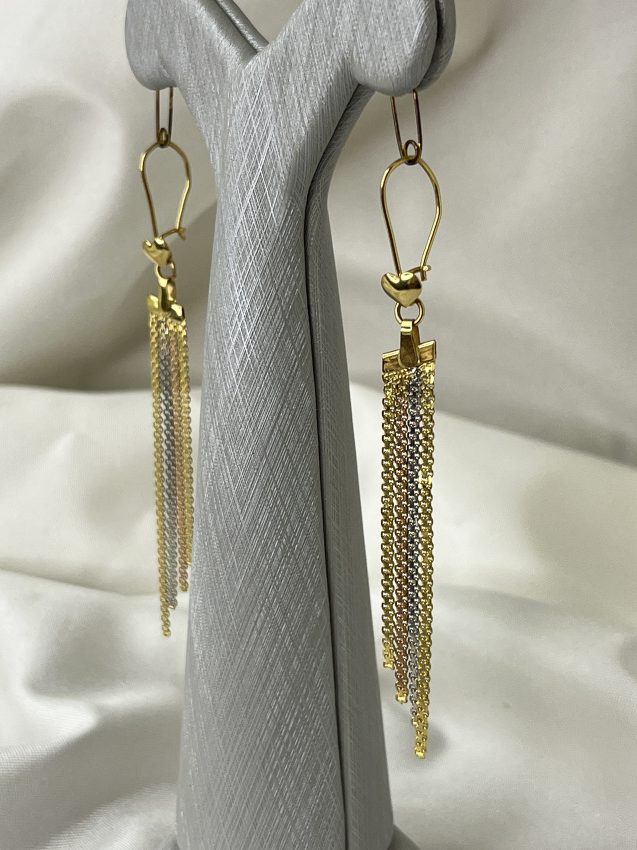 گوشواره آویز طلا ۱۸ عیار با وزن ۴.۶ گرم، انتخابی شیک و ظریف برای خانمهایی است که به استایلهای مینیمال و جذاب علاقه دارند. این گوشواره با طراحی مدرن و ظاهری براق، هم برای استفاده روزمره مناسب است و هم برای مهمانیها و مراسم رسمی.